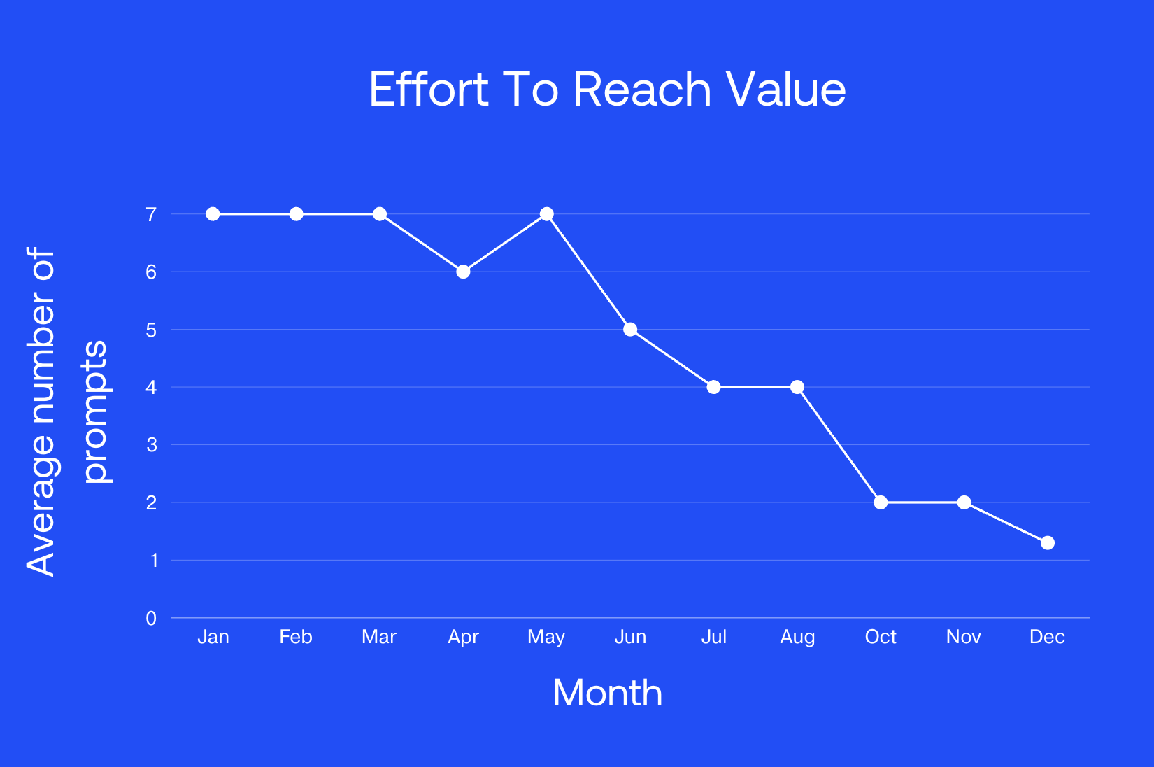 Reduction in Time and Effort: This chart illustrates the reduction in the average number of user prompts to reach a positive outcome. Similarly time required for users to achieve their goals could be presented. Lower values indicate more efficient interactions.