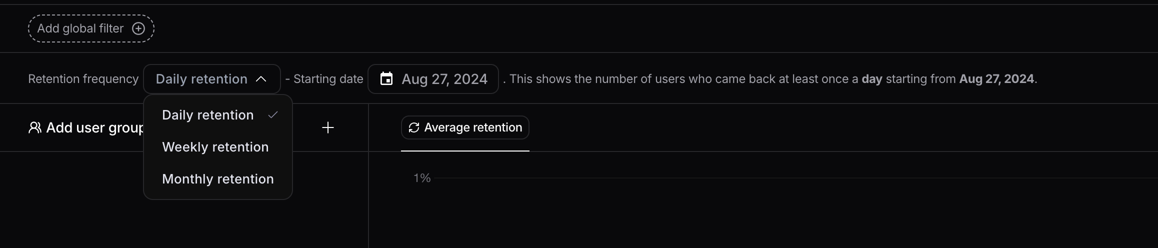 To simplify using the User Retention page, you can now easily select the “Retention Frequency” from: